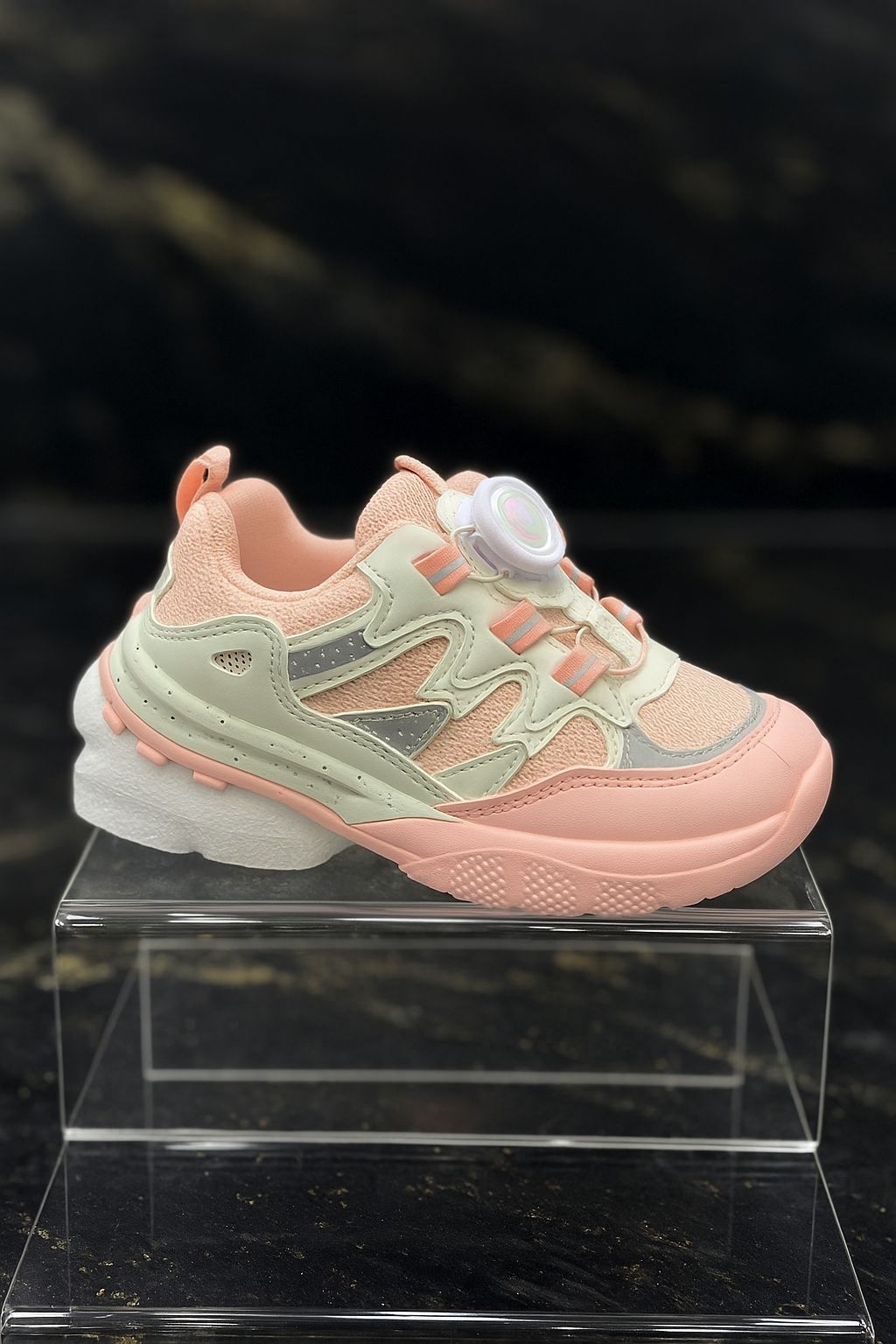 حذاء رياضي أنيق للأطفال باللون الوردي الفاتح والتصميم العصري، مصنوع من خامات عالية الجودة